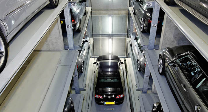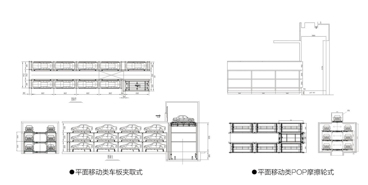 平面移動(dòng)類機(jī)械設(shè)備主要通過一臺升降裝置。按設(shè)計(jì)層數(shù)作上下運(yùn)動(dòng),將車輛運(yùn)送到 指定停車位,或從停車位提取車。一臺升降機(jī)可滿足每層8-20個(gè)車位,停車層數(shù)根據(jù) 需要,車輛可以停靠在混凝土或鋼樓梯表面上。